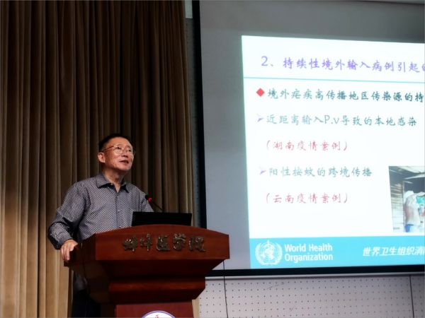 高琪教授作了题为“我国消除疟疾策略研究和消除后的研究需求”的学术报告。高教授系统地回顾了我国疟疾的流行状况,深入浅出地向听众介绍了我国消除疟疾这一波澜壮阔的过程,褒扬了疟防工作者心系人民健康,热情奉献的精神。高教授团队提出的“1-3-7”工作规范是我国消除疟疾阶段的重要创新,成为疟疾消除的关键策略,被WHO采用作为健康领域的中国经验在全球疟疾流行区推广实施。高教授还就“后消除时代”研究热点与研究生和青年教师做了分享,激励听众投身科研。