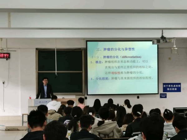本次授课内容为《病理学》“肿瘤的分化与异型性”,郭老师先系统讲解肿瘤的分化与异型性的定义、组织学特点,再进一步阐述了肿瘤的异型性与分化程度、恶性程度的关系。郭老师结合临床病例,深入浅出地把肿瘤的分化和异型性的理论充分运用到临床实践中,加深了员工们对肿瘤分化与异型性理论的认识,调动了员工课堂学习的积极性。