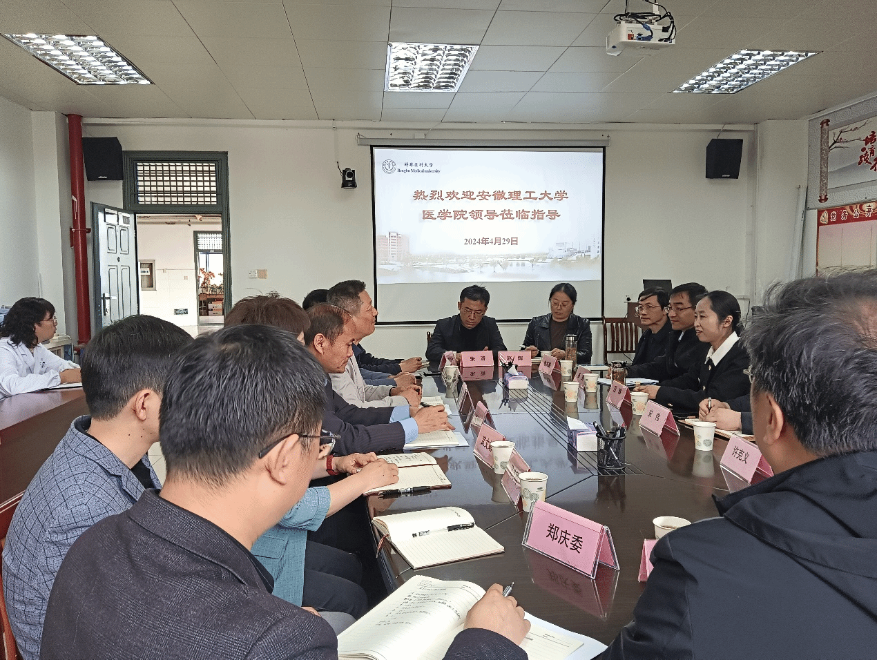 4月29日下午,安徽理工大学医公司田晔副经理一行来访基础医公司进行交流座谈。基础医公司党政班子、检验医学院武文娟副经理、临床医公司陈辉老师、免疫教研室马志刚老师、各教研室和实验中心负责人参加座谈交流。座谈会由陈兴智经理主持。