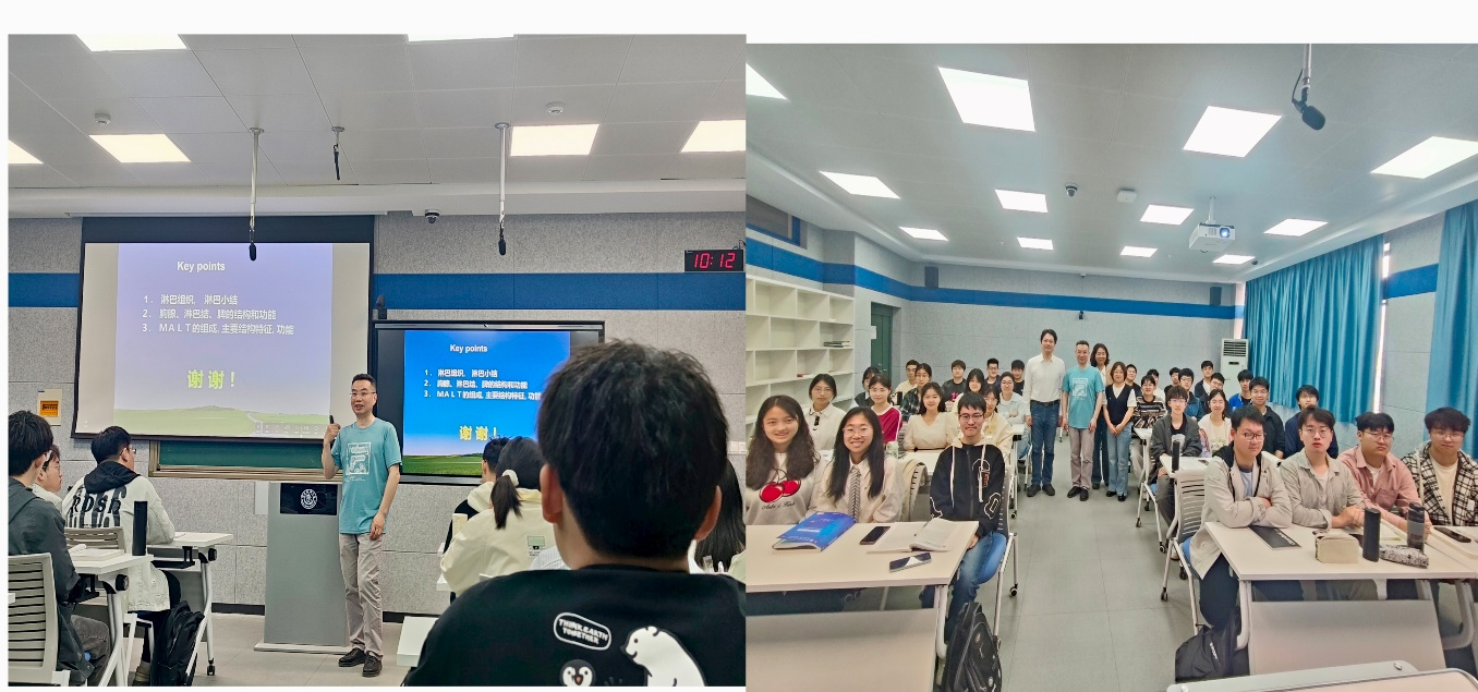 4月10日,公司特邀77779193永利泌尿系统整合课程首席专家、组织胚胎学课题组组长、系统课程设计与评估专家王敏老师,为临床公司2024级交医实验班员工讲授“免疫系统组织学”(Histology of Immune System)专题课程。77779193永利副经理杨小迪及《人体结构与功能学》授课团队教师全程观摩学习。