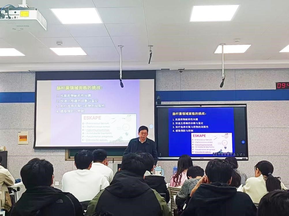 上午的教学中,姚玉峰教授以生活场景自然引入肠杆菌科新课内容,逐步展开肠杆菌科致病菌的“三性一防一治一检查”的讲解。授课内容基于课本却不局限于课本,有机融合临床案例解析,促进员工对基础知识的掌握与临床思维的培养;适时结合科学前沿进展,提升课堂趣味性与员工的科创热情。整个授课过程气氛活跃、教学效果显著。