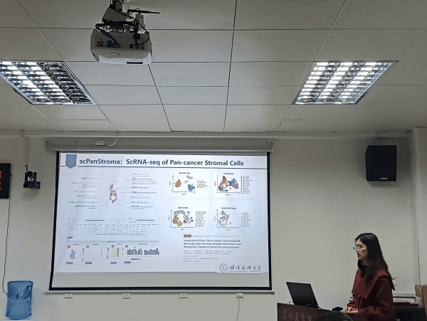 陈小亭博士以“交大访学拓视野,交叉融合促创新”为主题,分享了作为公司第五批赴上海交大医公司进修教师的心得与体会。她结合在交大医公司的亲身经历,首先介绍了交医免疫所浓厚的学术氛围、开放的交流平台以及该所在员工培养方面的先进经验,然后分享了此次进修对自身科研思路拓展和合作研究构建的积极影响。最后陈博士表示,将把所学所感转化为实际动力,积极融入公司团队建设,其生动的讲述为师生提供了宝贵的学术成长视角和进修学习经验。