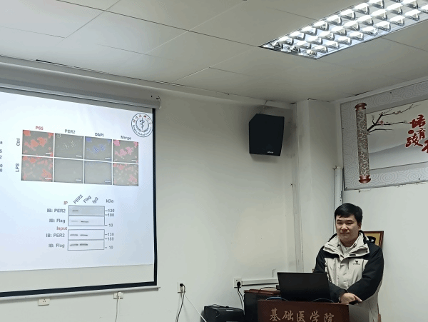 丁昭博士详细汇报了前期研究基础,并分享了未来课题申报初步设计与思路。报告从生物钟关键蛋白PER2在巨噬细胞糖原代谢中的作用切入,重点阐释了PER2通过调控糖原合成酶的表达影响巨噬细胞功能状态,进而参与肠道免疫稳态失衡及直肠脱垂发生发展的潜在机制。丁昭博士结合已有实验数据,从科学问题凝练、研究假说构建到技术路线布局层层展开,展现出扎实的工作积累。