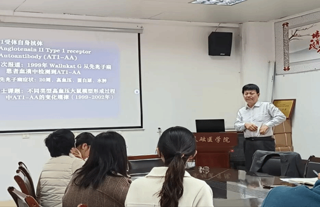 支建明围绕“AT1受体自身抗体的研究与课题申请”开展学术讲座。系统分享了该课题实验过程与最新研究成果,并剖析了课题选题的灵感来源。他还强调广泛的文献阅读、积极的学术交流以及同仁间的深入合作,是激发创新思路的重要途径,更以自身攻坚克难的科研经历,深切勉励广大师生,真正的科研探索,贵在秉持不畏艰难、甘于付出的执着精神。为师生带来了深刻的启迪与激励。