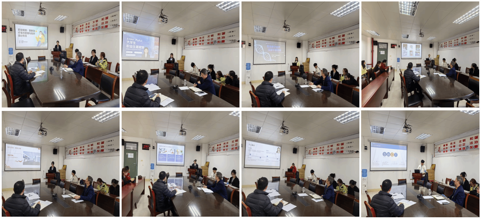 比赛中,参赛选手围绕自我认知、职业目标、发展路径及动态评估等方面进行了系统阐述。他们紧密结合基础医学的学科特性与个人研究方向,展现出扎实的专业功底与清晰的职业蓝图。同学们表达了投身科学研究、服务“健康中国”建设的坚定信念,充分彰显了新时代医学研究生的使命感与责任感。